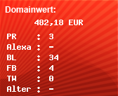 Bei Alexa wird diese Domain auf Platz 0 gelistet. Der Seoanbieter seoMoz hat für die Domain noch weitere Interessante Werte ermittelt. Dies wäre der MozRank mit 4.53/10, DomainAuthority mit 41/100 und PageAuthority mit 39/100. Der Sichtbarkeitsindex bei Sistrix beträgt 0,11.